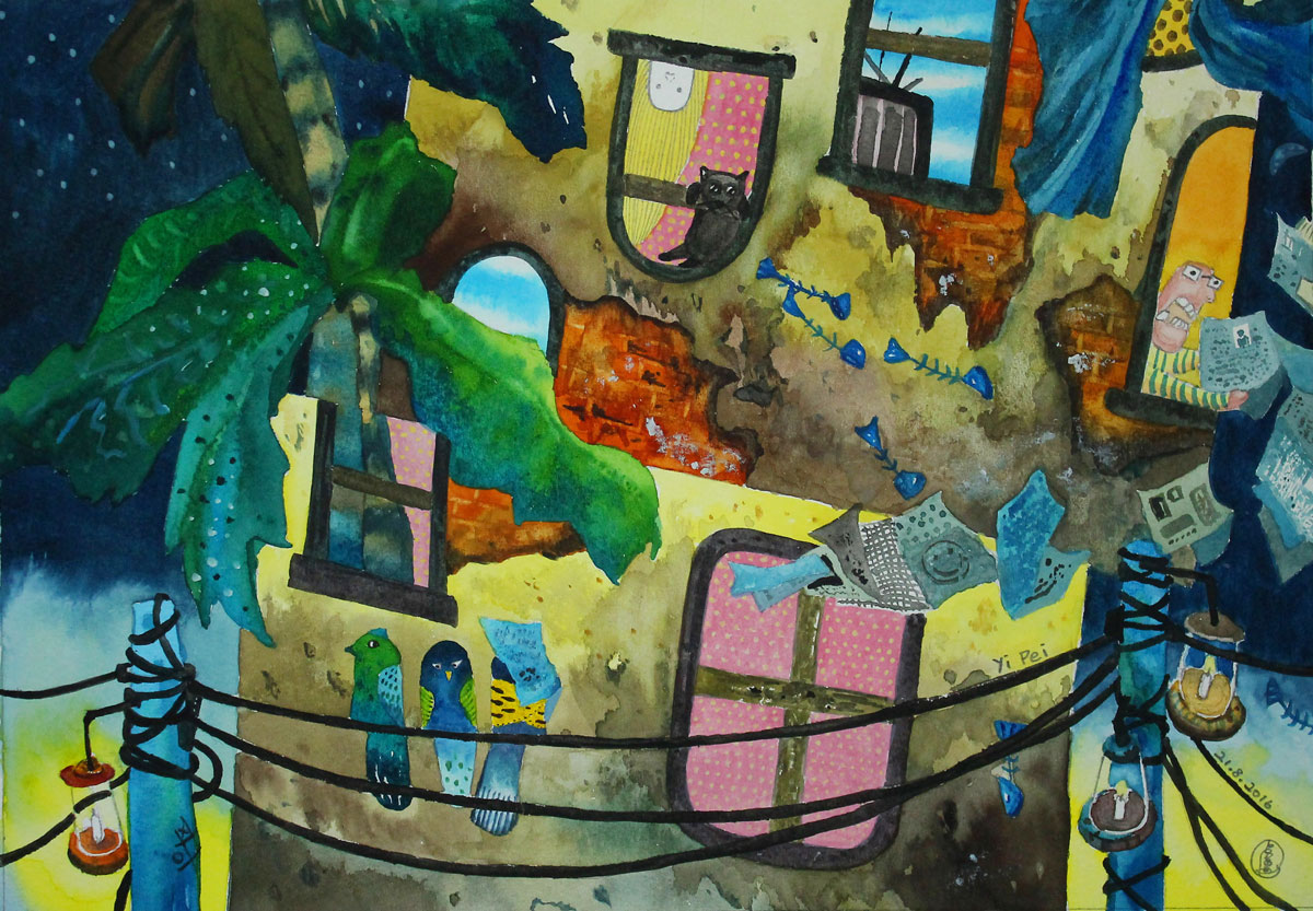 Be as Calm as the Birds, watercolour on paper, 24 x 34.5 cm, 2016. (Melbourne, Australia)(SOLD)