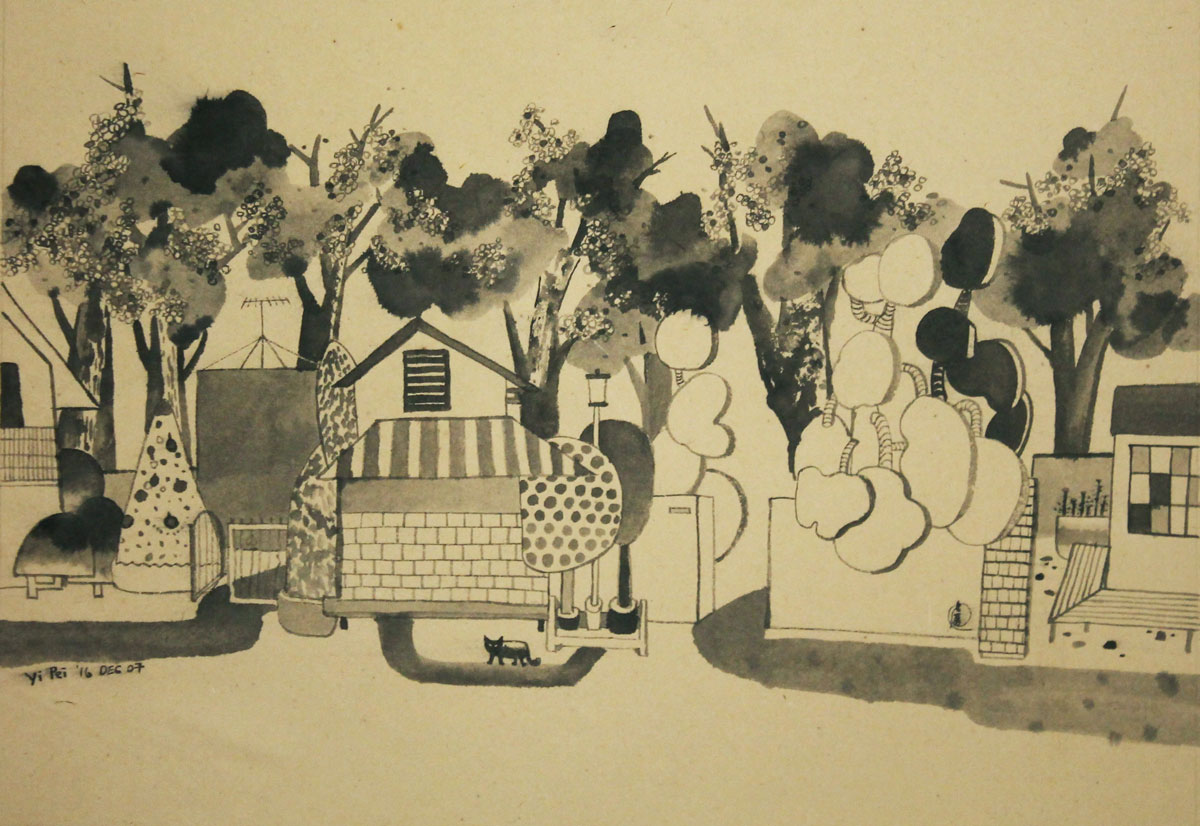 On my Way, ink on paper, 29.7 x 42 cm, 2016. (Sengawa, Tokyo)