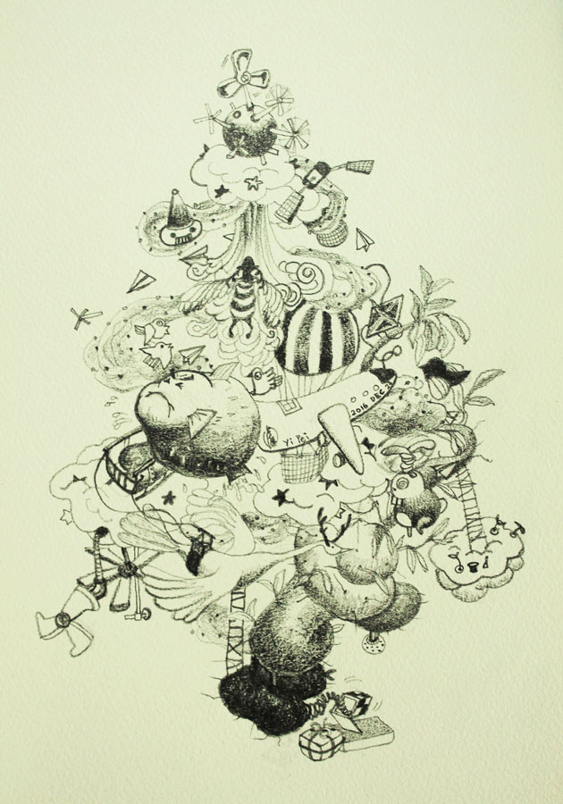 Christmas Time: the Sky Theme, pencil on paper, 29.7 x 21 cm, 2016. (Sengawa, Tokyo)