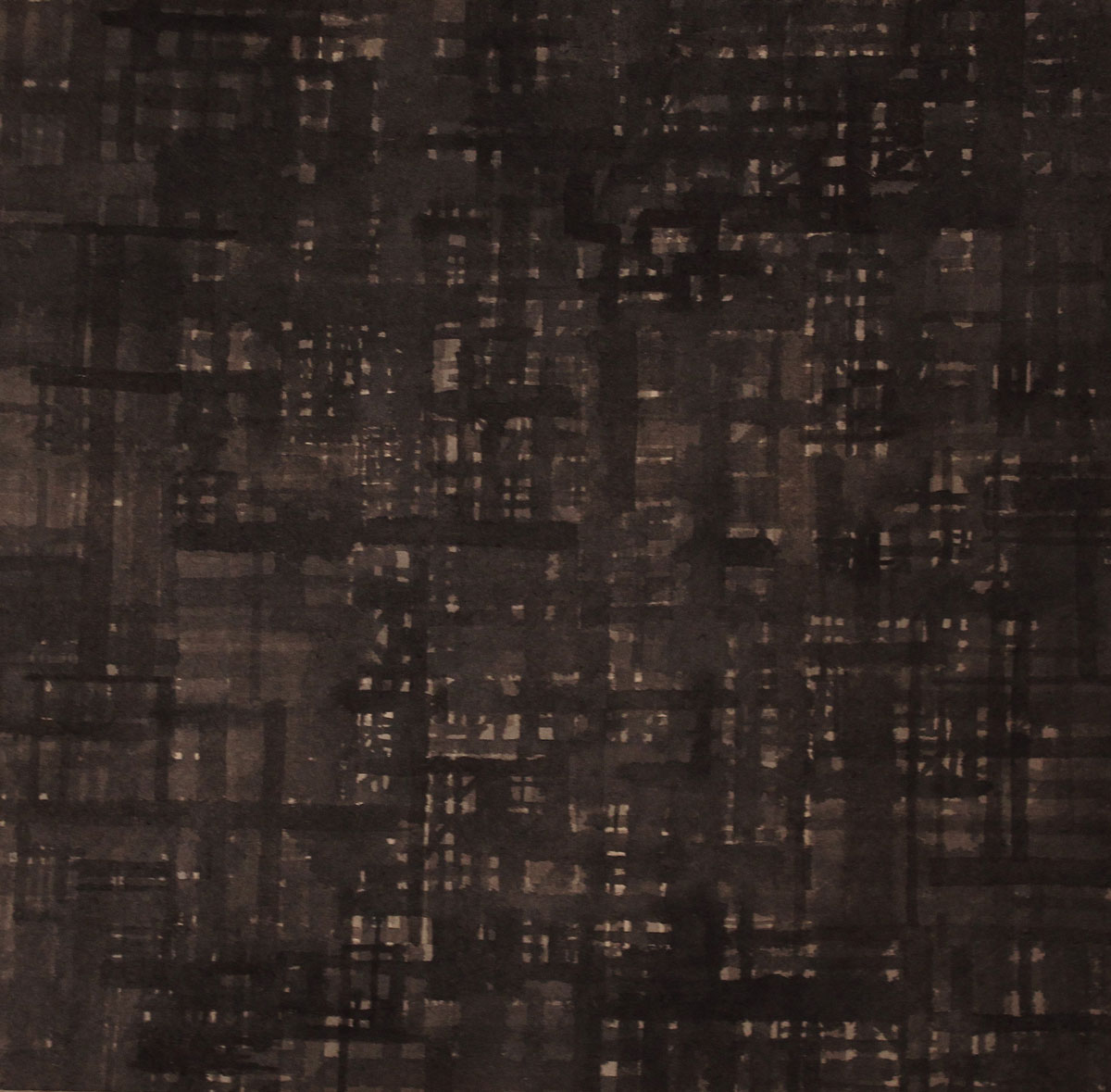 City in the Darkness, ink on paper, 28 x 29 cm, 2017. (Sengawa, Tokyo)