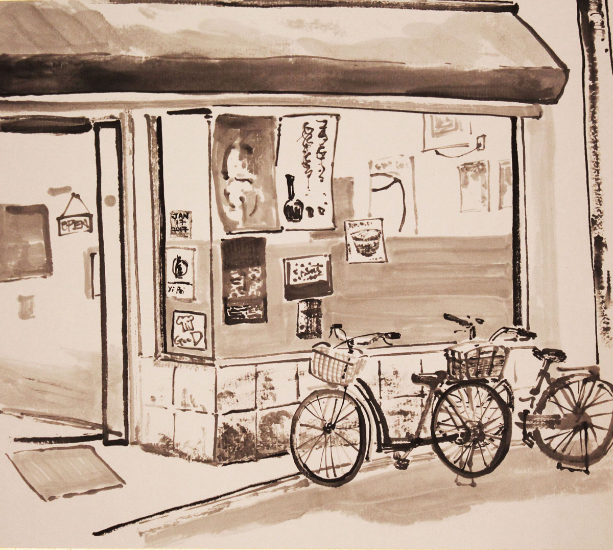 Street View in Sengawa, ink on paper, 24.2 x 27.2 cm, 2017. (Sengawa, Tokyo)