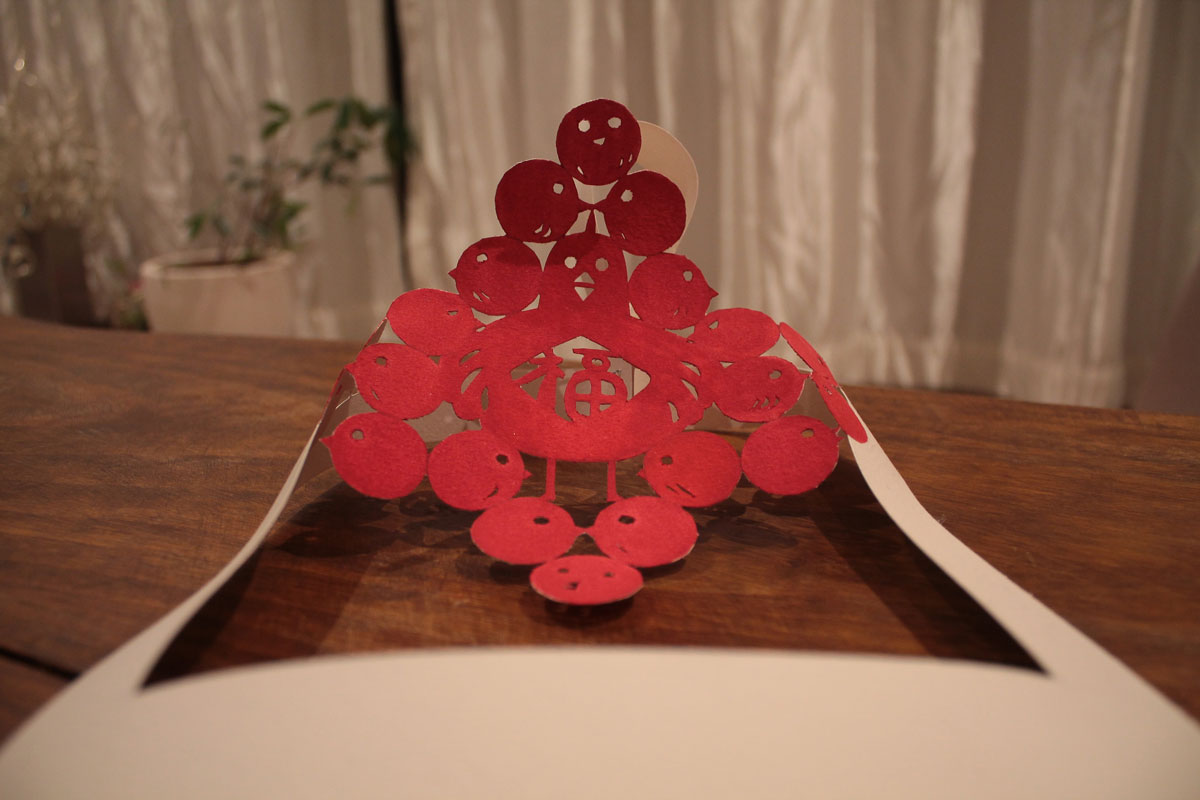Year of Rooster, paper cutting and watercolour on paper, 2016. (Sengawa, Tokyo)
