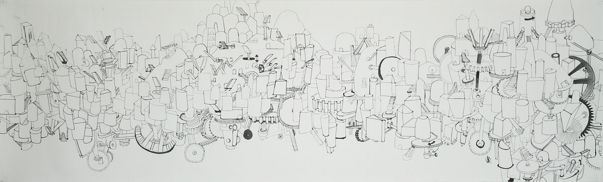 The City with Moving Stairs, Chinese ink on rice paper, 35.5 x 118.5 cm, 2017. (Melbourne)