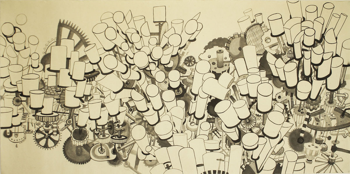 The Spinning City, Chinese ink on rice paper, 65 x 129.5 cm, 2017. (Melbourne, Australia)