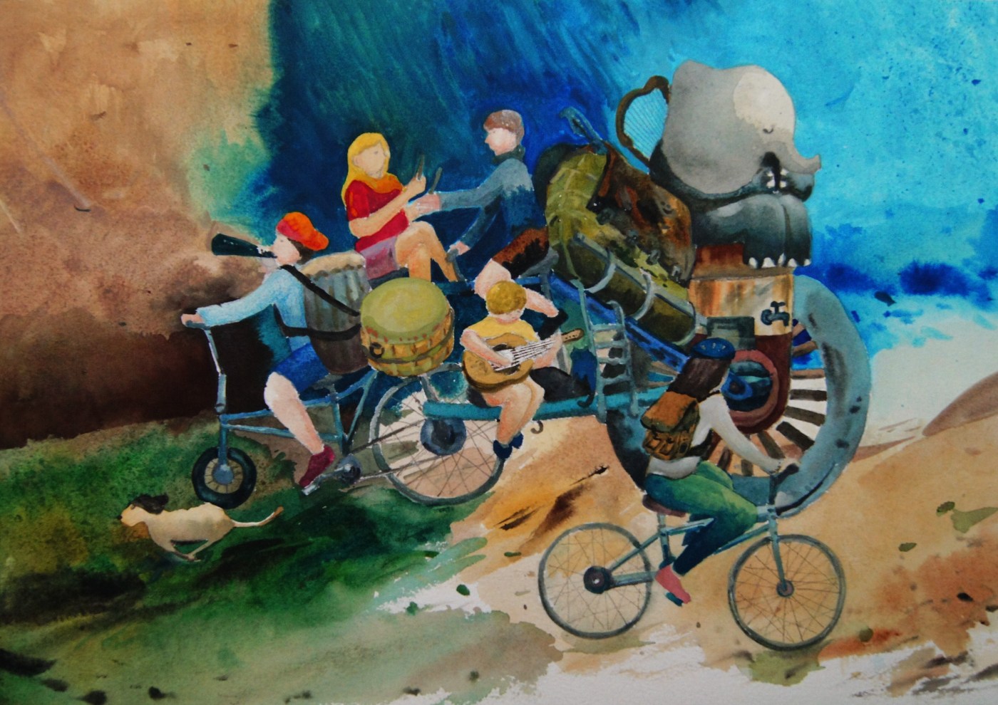 Riding the Tandem Bike, watercolour on paper, 28.5 x 40.7 cm, 2018. (Melbourne, Australia) The Good Room gallery