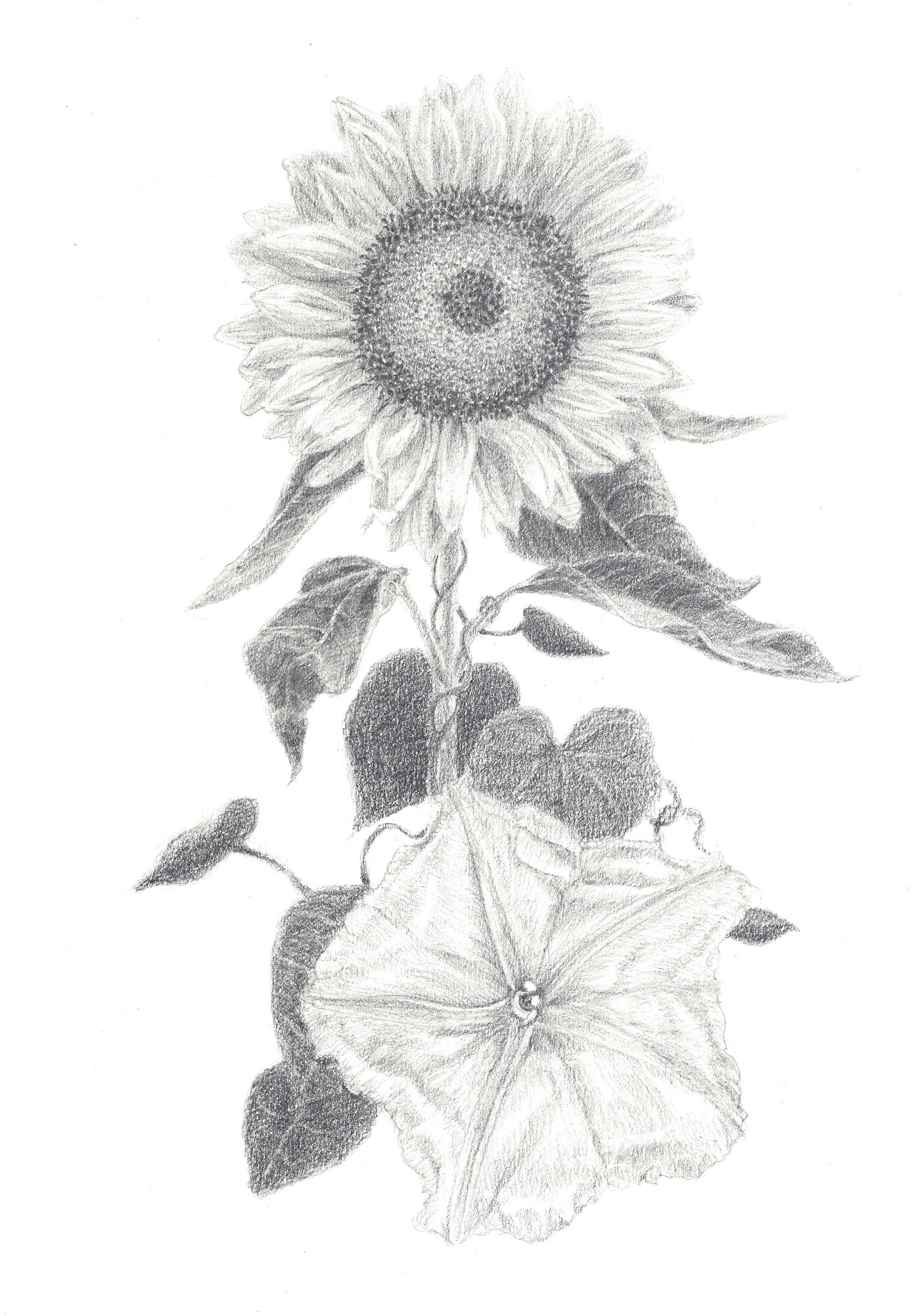 Sunflower and Moonflower, pencil on paper, 2019. (Melbourne)