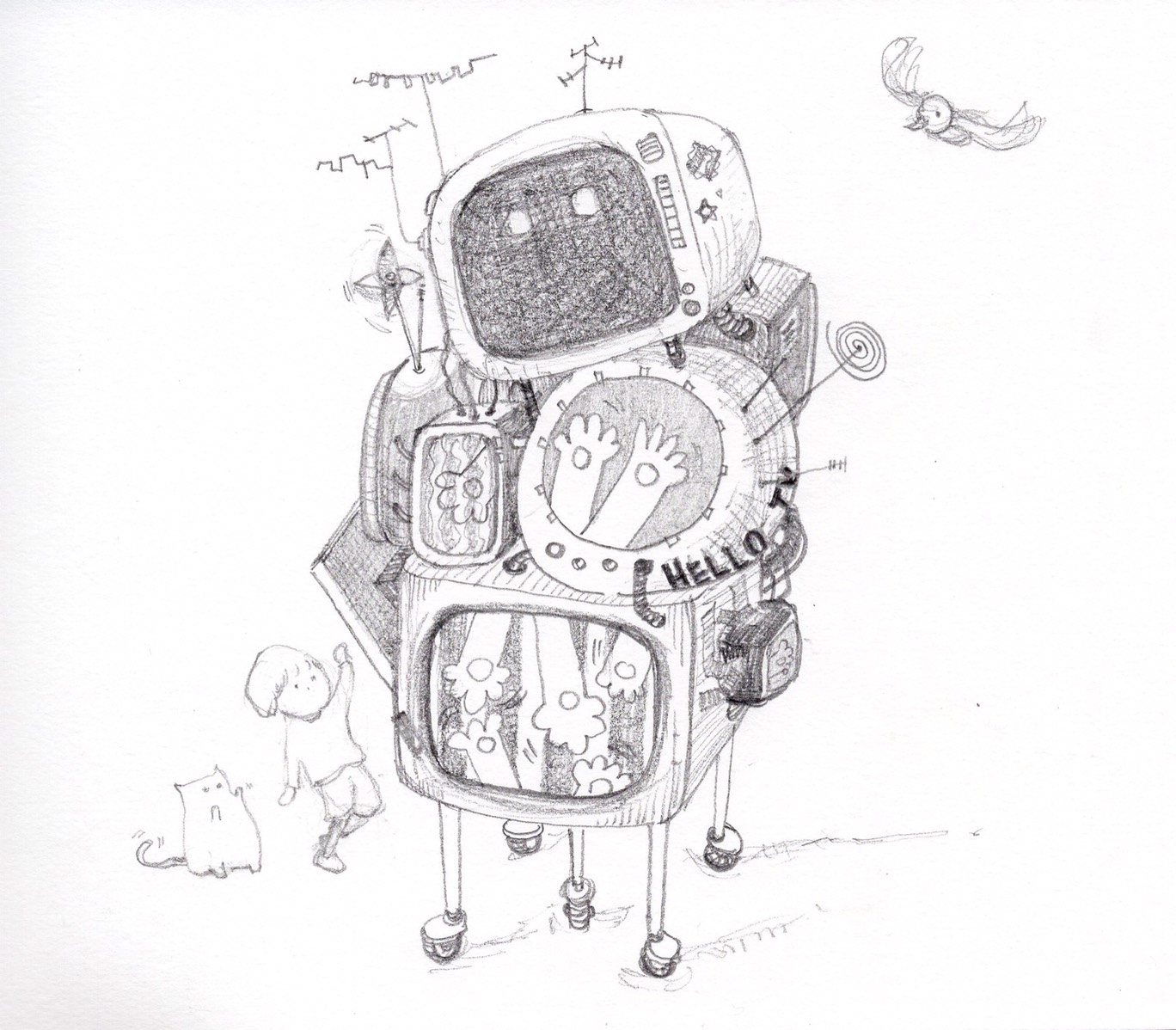 #hello #TV #TheRandomCreature #illustration #pencil #artwork #paper #drawing #sketch #art # #artist #originalart #blackandwhite #JustDrawIt #藝術 #艺术
