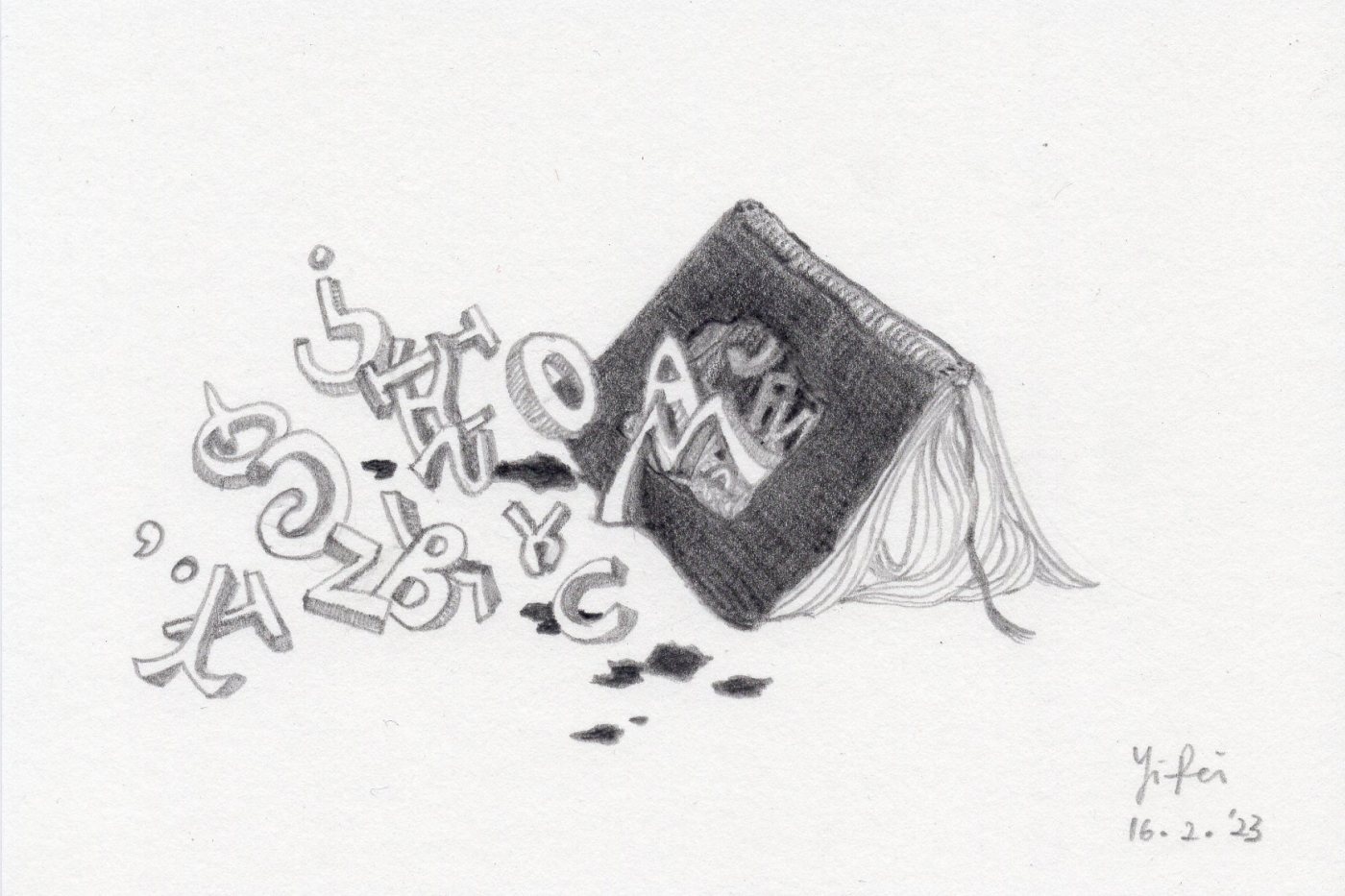 The Unknown Book 4 – the one with the Leaving Letters Pencil on paper, Feb 2023. Share this: Share on X (Opens in new window) X Share on Facebook (Opens in new window) Facebook Like Loading... Related Leave a comment Cancel reply Δ