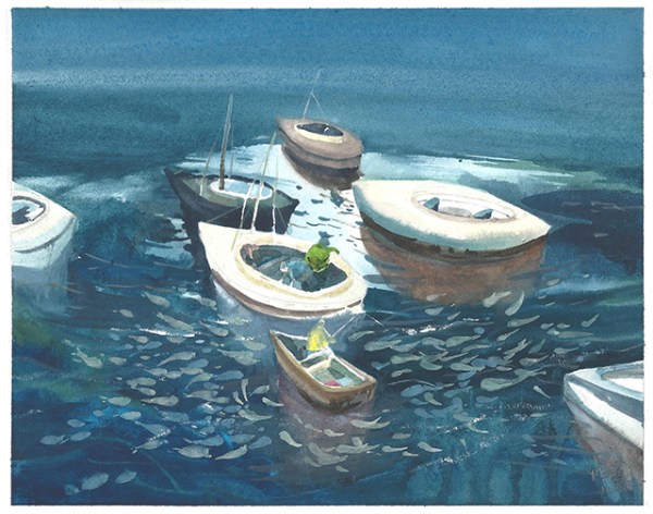 Fish Fish Fish, watercolour on paper, 21 x 26 cm, 2019. (Melbourne, Australia)