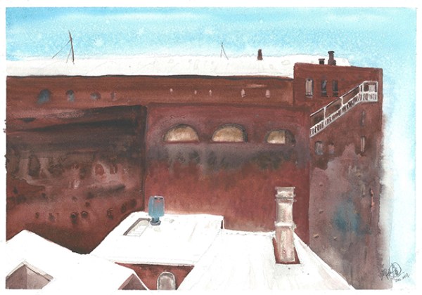 Letter Box on the Roof, watercolour on paper, 21 x 29.7 cm, 2019. (Melbourne, Australia)