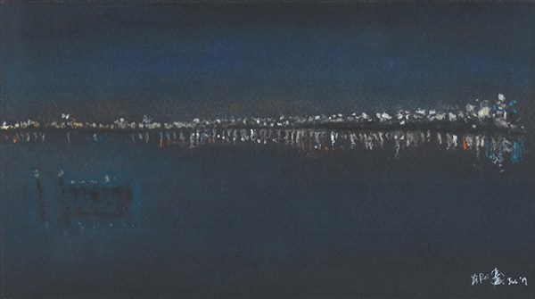 Night, Sea, Reflection, soft pastel on paper, 13 x 23 cm, 2019. (Melbourne, Australia)