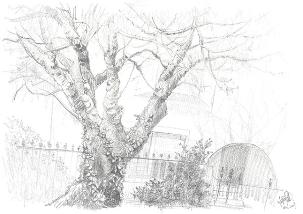 Tree at Princess Street, pencil on paper, 21 x 29.7 cm, 2019. (Melbourne, Australia)(SOLD)