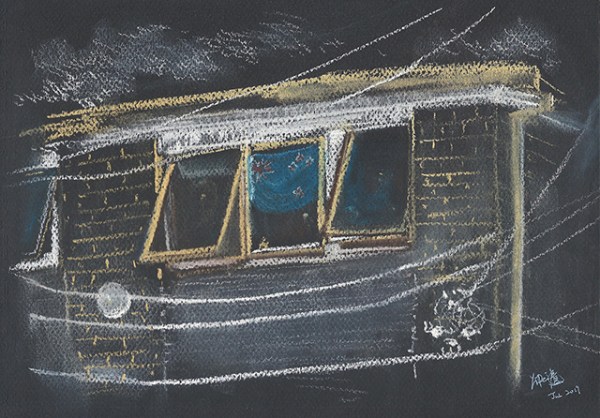 Window at Grey Street, soft pastel on paper, 21 x 29.7 cm, 2019. (Melbourne, Australia)