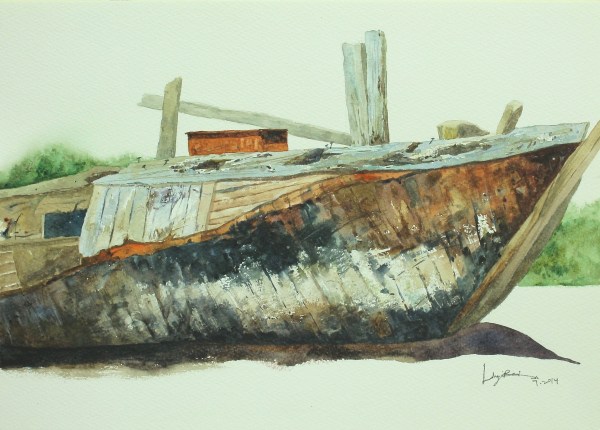 The Stranded Boat Became an Island, watercolour and pencil on Japanese paper, 20.5 x 29 cm, 2017. (Auckland)
