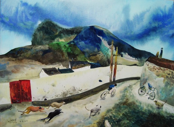 Hiker and his Dog, watercolour on paper, 29.7 x 42 cm, 2017. (Melbourne, Australia)(SOLD)