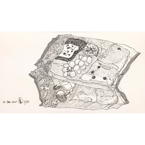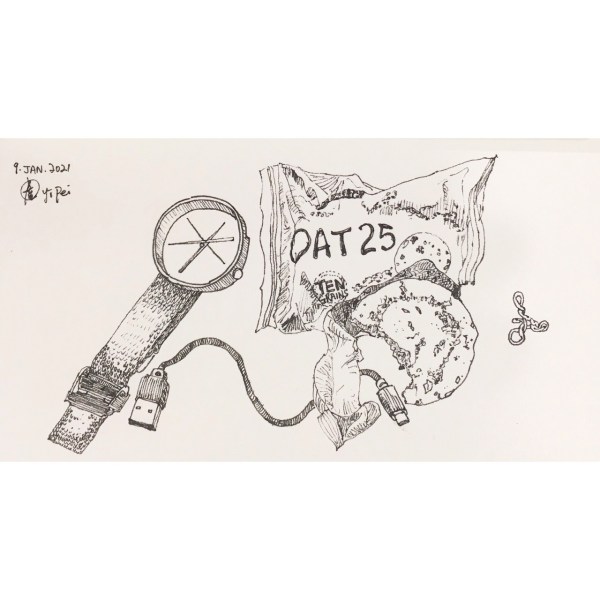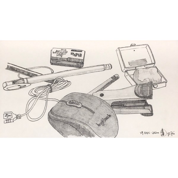 Cable, watch, rubber band, bitten biscuit and my paused tea break